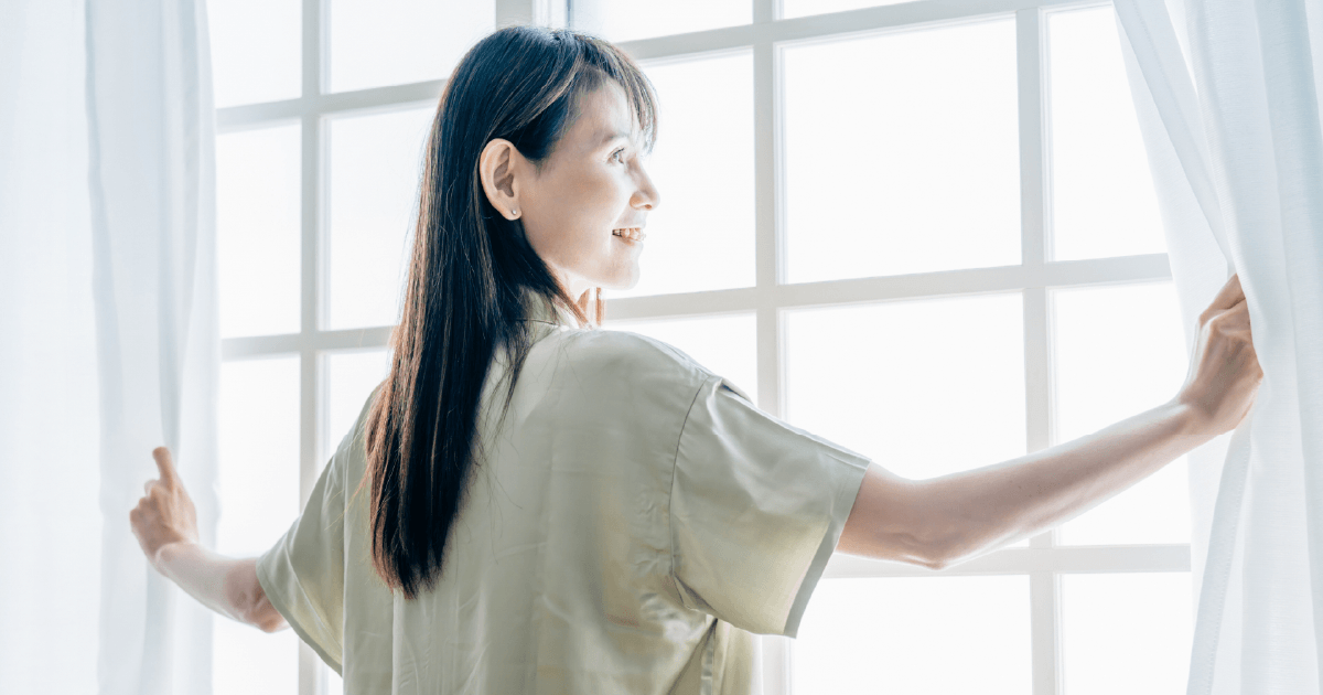 起床後すぐにカーテンを開けて、5〜10分でも外の光を浴びるよう意識しましょう。